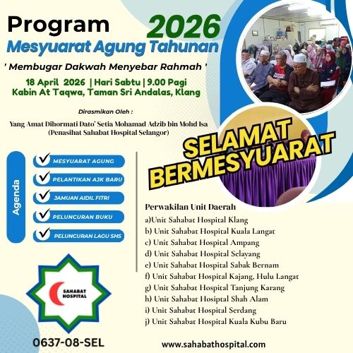 SAHABAT HOSPITAL SELANGOR ialah sebuah NGO yang didaftarkan dibawah Pendaftaran Pertubuhan Malaysia dengan nama Persatuan Sukarelawan Islam Hospital Selangor dengan nombor pendaftaran 0637-08-SEL.