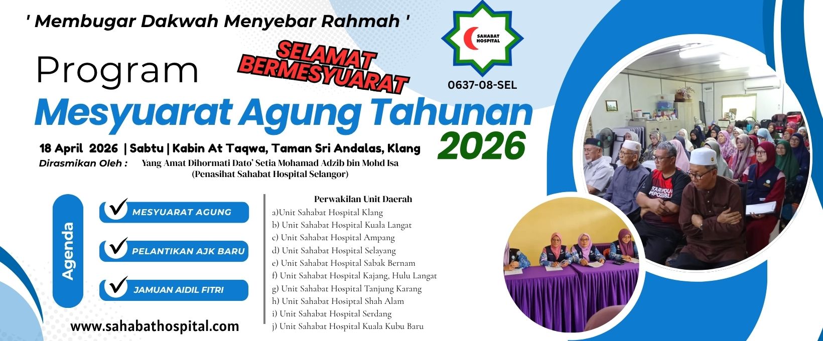 SAHABAT HOSPITAL SELANGOR ialah sebuah NGO yang didaftarkan dibawah Pendaftaran Pertubuhan Malaysia dengan nama Persatuan Sukarelawan Islam Hospital Selangor dengan nombor pendaftaran 0637-08-SEL.